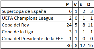36 precedentes en cinco competiciones diferentes