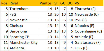 Aunque están igualados a 6 puntos con otros cuatro equipos, todo está abierto y la diferencia es bien estrecha. Estos serán sus rivales en la pelea por el Play-off: